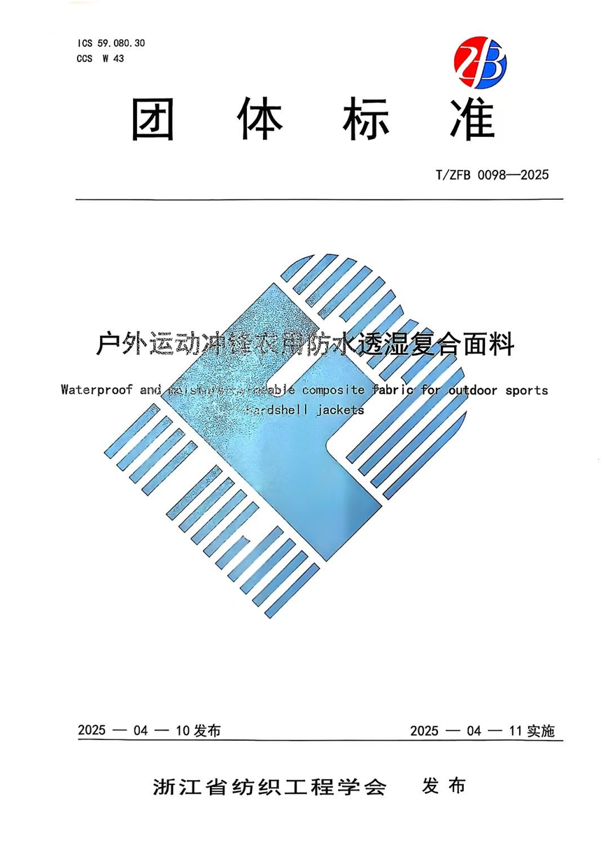 我司參與的《戶外運動沖鋒衣用防水透濕復合面料》團體標準起草工作,該標準經專家審議通過,2025年4月11日起實施。此次參與不僅彰顯了我司在行業內的專業地位與責任擔當,更是對行業規范化、標準化發展的積極貢獻。